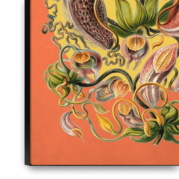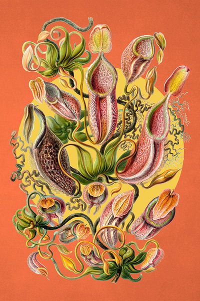 Bring a unique blend of modern pop art and vintage style into your home with this stunning botanical illustration of carnivorous plants set against a colourful and cheerful background.