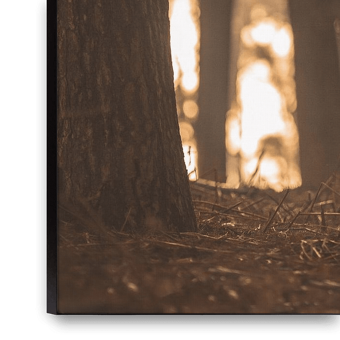 A deer waling in the morning sunset strolling into the woods searching for food.