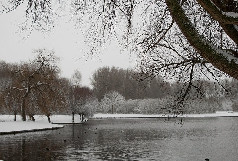 a pond in a park in holland during time of snow in winter by ChrisWillemsen