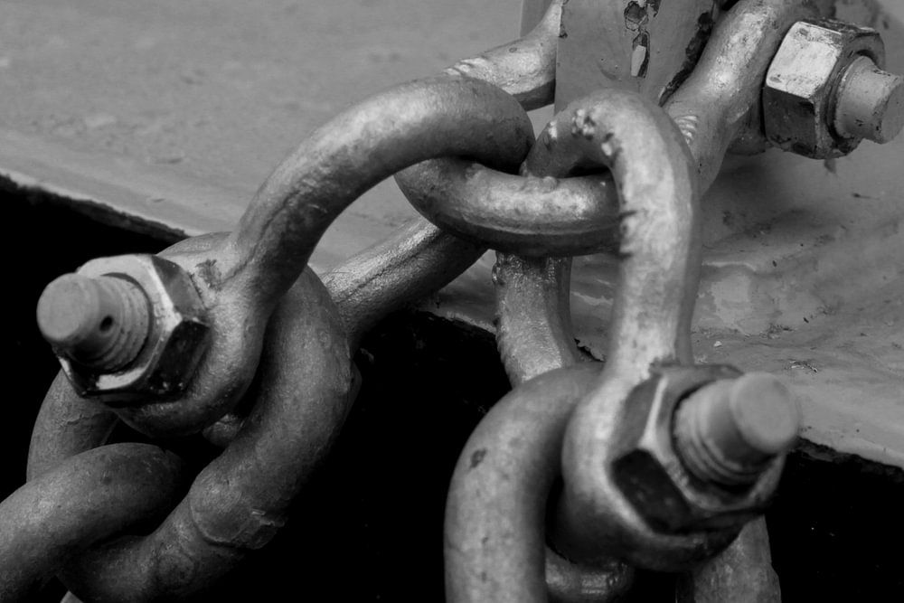A black and white photograph taken in an abandoned workshop in an old shed.