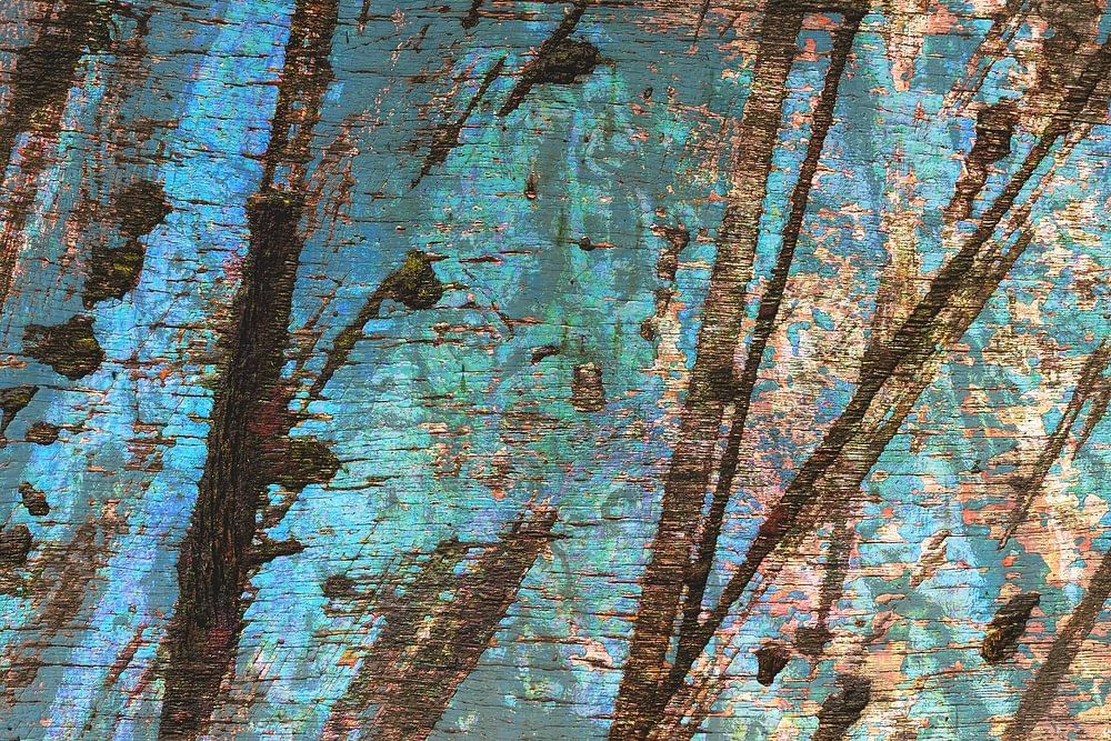 a wooden board shows signs of use and colours (two layers joined together)......the image is reminiscent of swaying reeds along the water....and the proverb "after rain comes sunshine"...