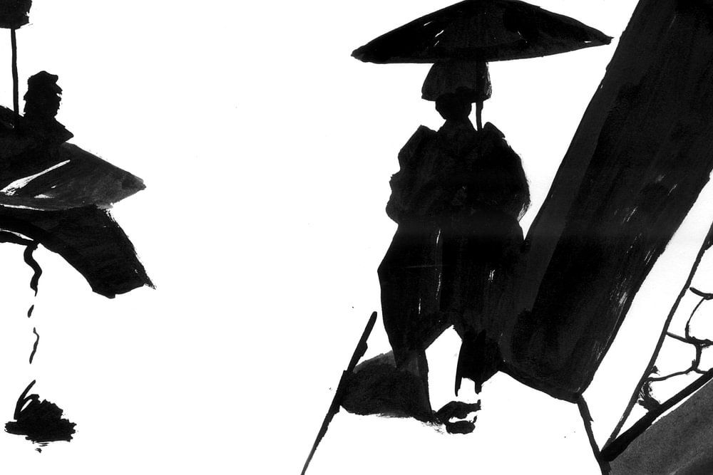 old japanese technique from the 8th century. it consists to draw in a few lines only with chinese ink on paper. part of zen culture