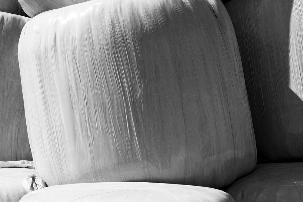 Hooibalen in plastic in de zon