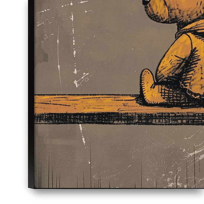 This digital artwork exudes a sense of melancholy and hope. A lone teddy bear, dressed in a weathered jacket, sits on a bench looking out over a deserted landscape. The muted colours and coarse texture enhance the mood of loneliness, while the bear's soft contours add a touch of tenderness. This artwork is a powerful reminder of the…