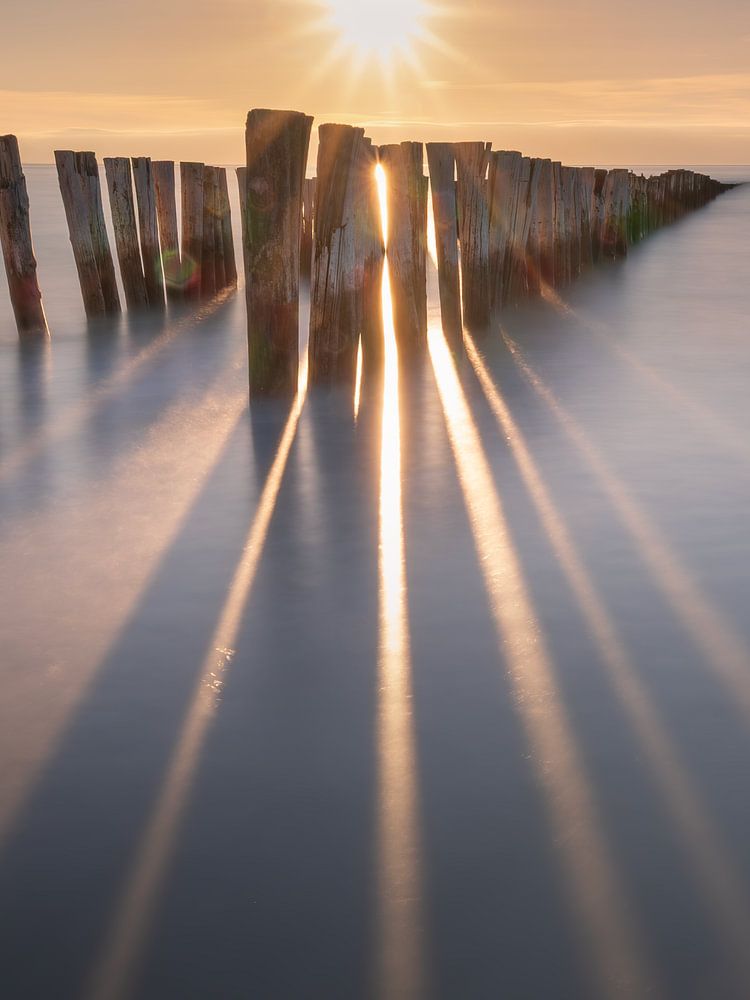 This photo was exposed for 100 seconds, making the water smooth, the sun's rays by using the right aperture.