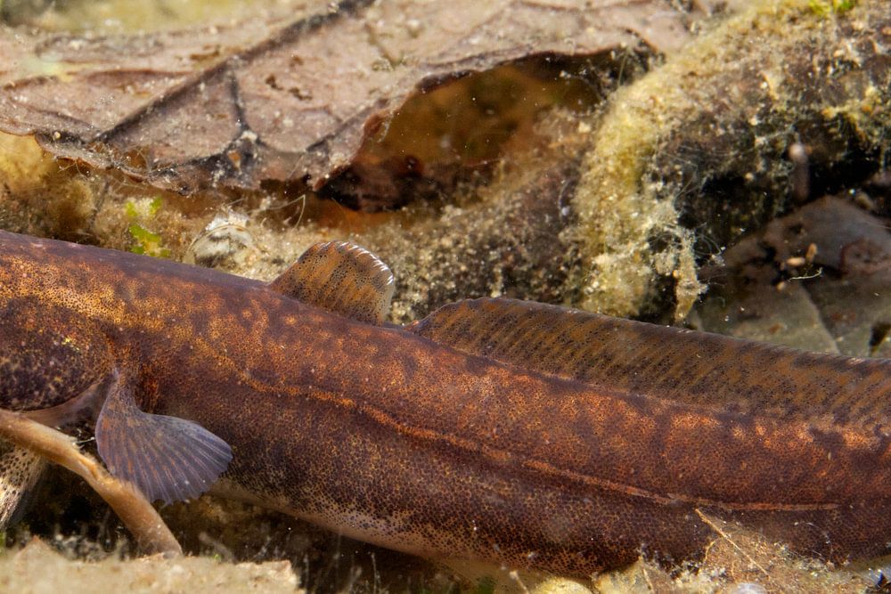 bibblebee hides between the leaves. this very rare freshwater cod is rare on the spot.