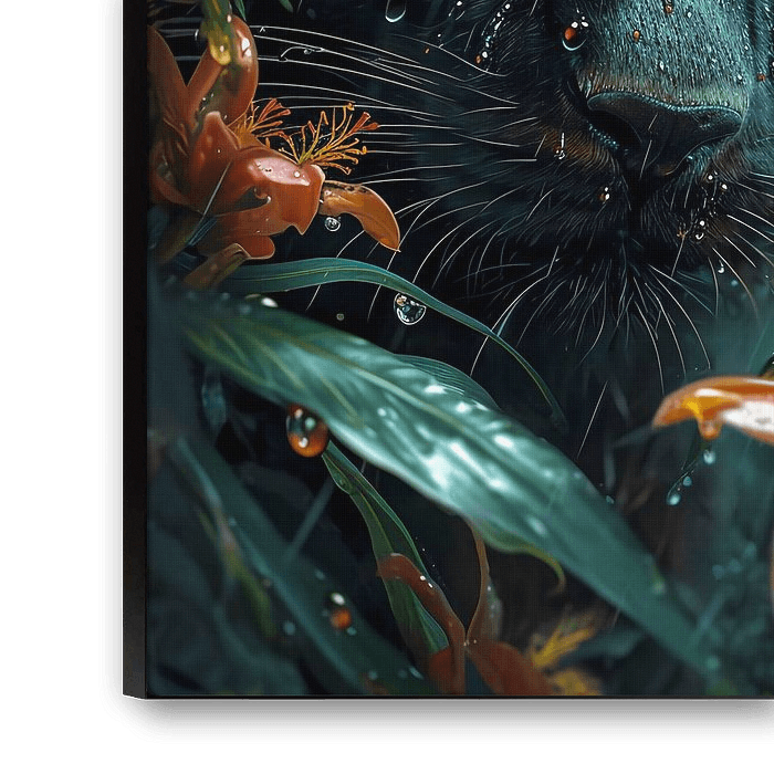 Buy this flower art black panther in the jungle by haroulita on canvas, ArtFrame, poster and wallpaper, printed on demand in high quality.
