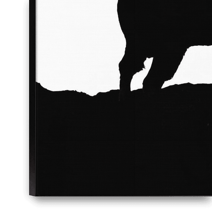 Buy this abstract artwork black silhouette of a horned goat on a rock on a white background. Goat Markhor stands on the mounta by Michael Semenov on canvas, ArtFrame, poster and wallpaper, printed on demand in high quality.