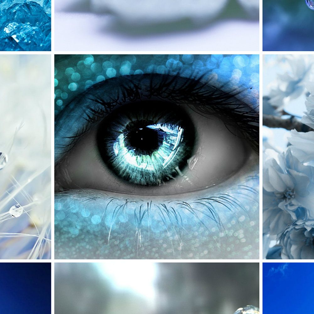 blauw, oog, waterdruppels,wolken, bloemen, ijs