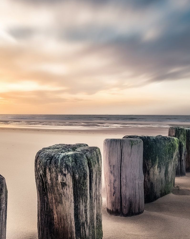 On the beach of Zeeuws-Vlaanderen the picture was taken of these breakwaters. Breakwaters are constructions that are built on the coast, as part of the coastal defense, or to protect a harbor entrance from weather and sea currents along the coast.