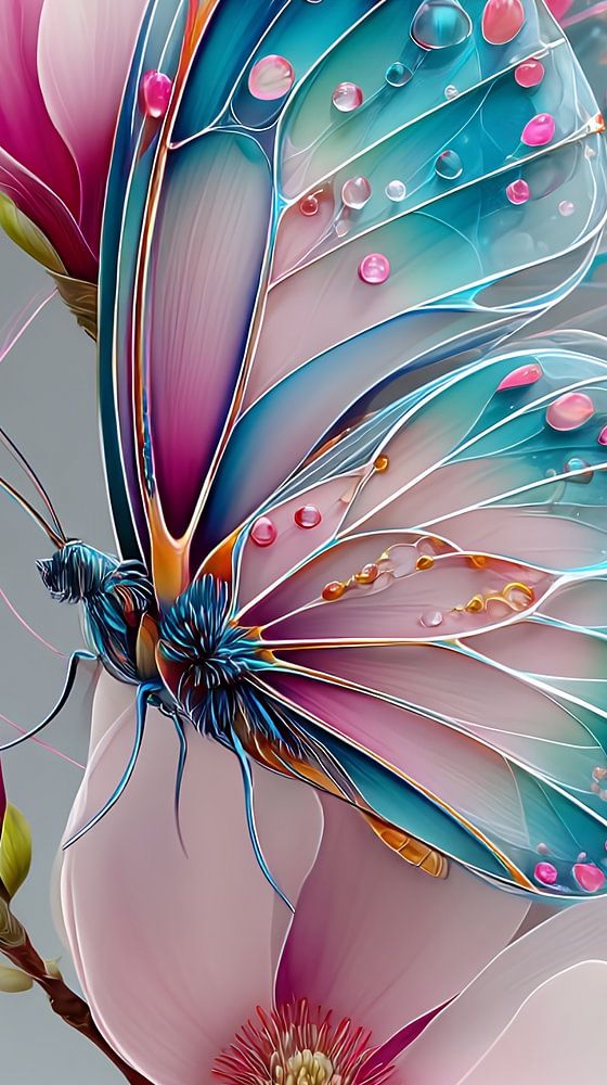 Buy this digital art artwork butterfly on flower by Gelissen Artworks as a reproduction on canvas, ArtFrame, poster and wallpaper, printed on demand in high quality.