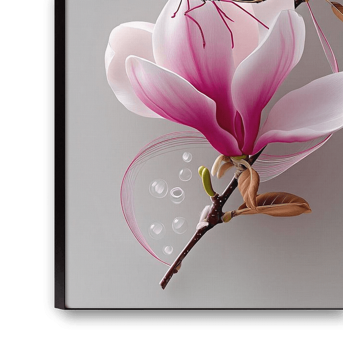 On a calm branch, the fleeting meets the solid: a butterfly lands gently on a magnolia flower.