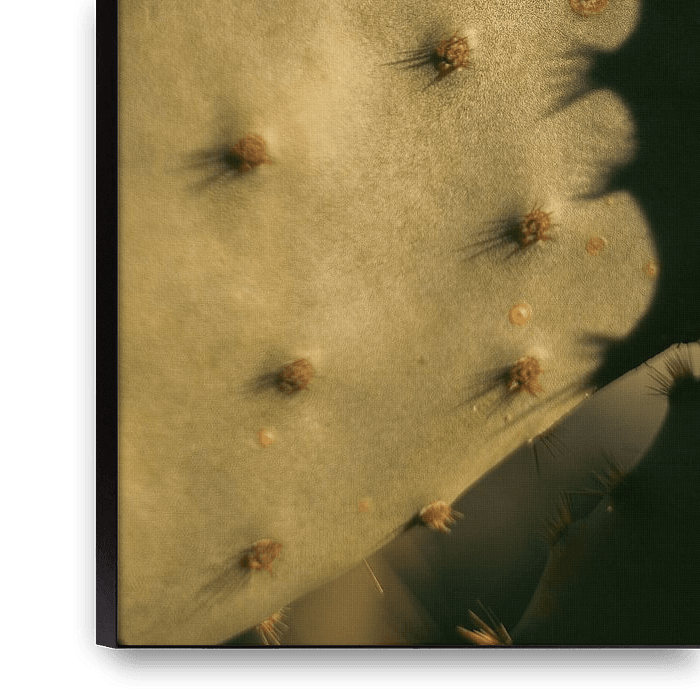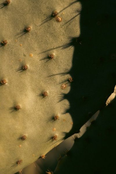The cactus skin not even, not perfect but very prickly. These prickles are clearly visible through the shadows and through the golden glow of the Spanish sun.