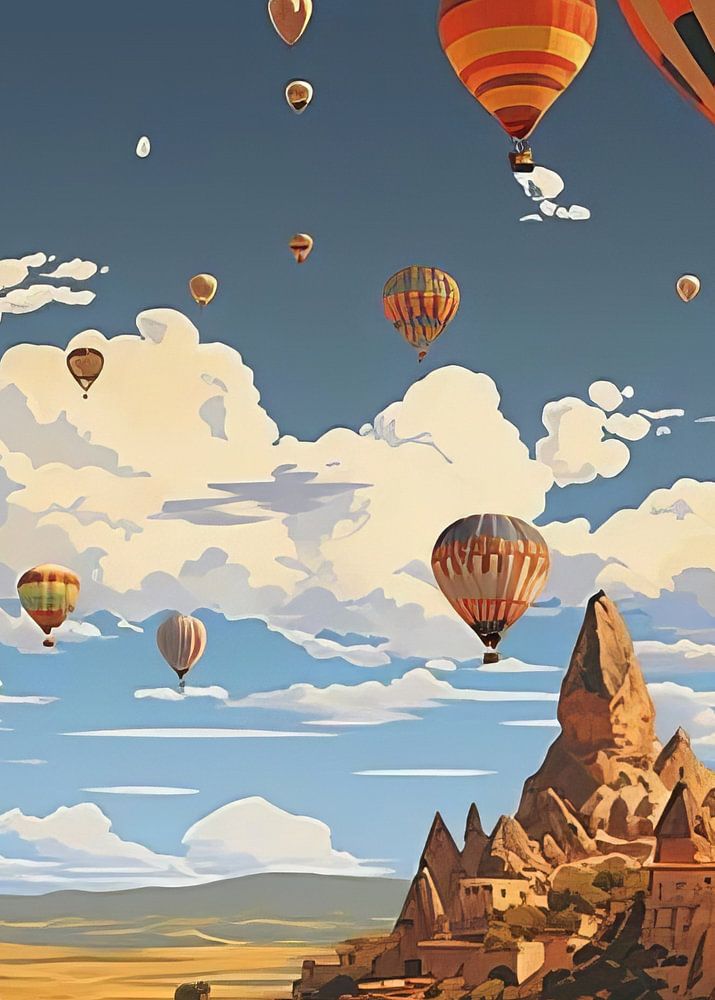 Buy this art deco artwork cappadocia by gil an on canvas, ArtFrame, poster and wallpaper, printed on demand in high quality.