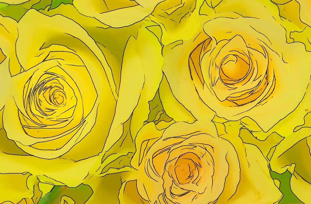 Buy this flower art cartoon of bouquet of yellow roses as wallpaper background by ChrisWillemsen on canvas, ArtFrame, poster and wallpaper, printed on demand in high quality.