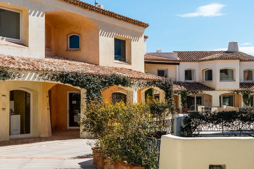 typical italian architecture in the centre of Porto Cervo on the italian island of sardinia, the place where in the summer the rich and famous travel for their exclusive vacation,