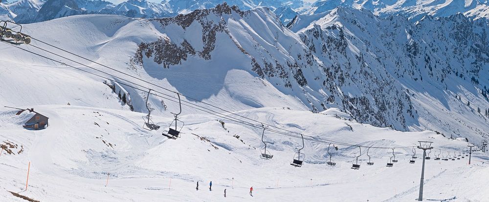 chairlift in the ski area at Nebelhorn mountain. winter sports resort Oberstdorf in the Allgau Alps. beautful landscape south germany.