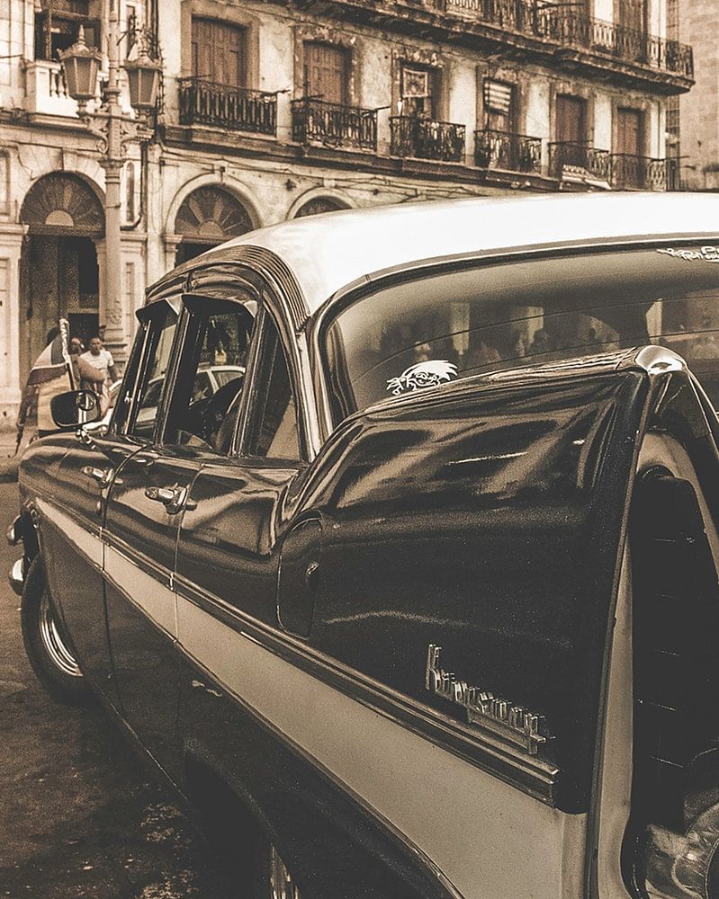 A vintage car with the bustling city of Havana in the background. The interplay of lines is interesting here, though. The car is parked at a bit of an angle, but this is how this sloping line guides you to the background of the photo.