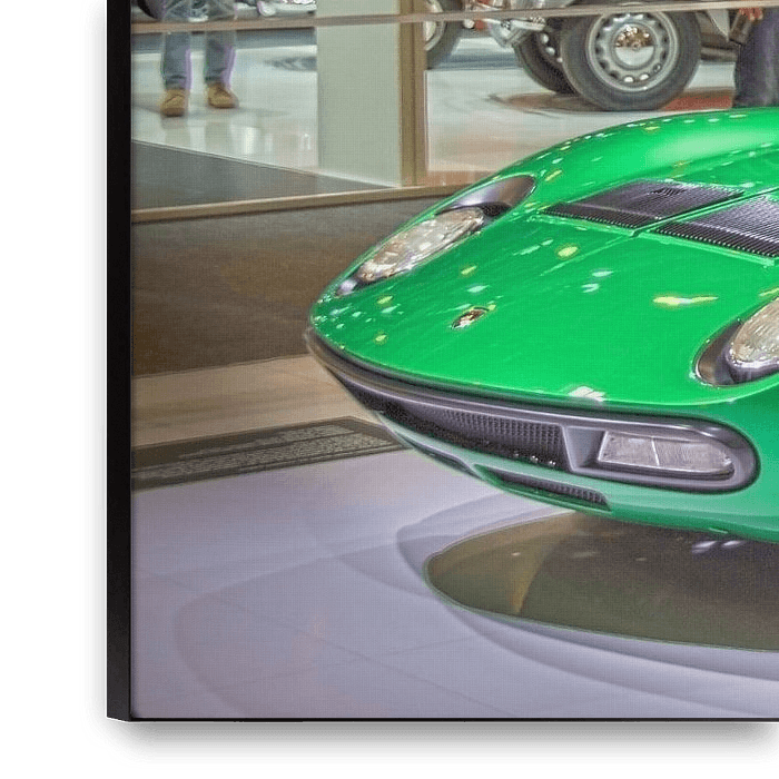 This sporty classic, a green Lamborghini Miura SV was given an extra nice polish to "shine" at a car show.