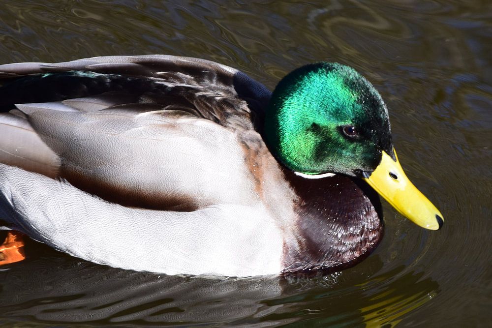 Deze eend vond ik erg mooi vanwege zijn felle kleuren je ziet vooral het groene van zijn kopje goed het geel van zijn snavel en het oranje van zijn pootjes.