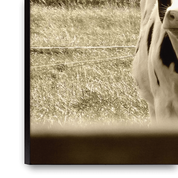 Buy this modern artwork curious cows in a row by Jessica Berendsen on canvas, ArtFrame, poster and wallpaper, printed on demand in high quality.