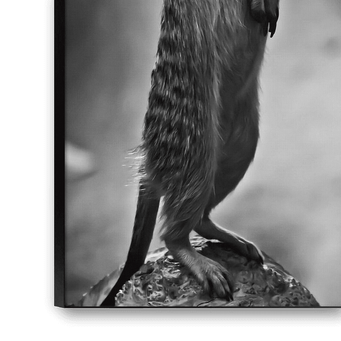 Buy the photo cute meerkat worth column- Meerkat attentively looks into the distance - disciplined lookout. proud by Michael Semenov on canvas, ArtFrame, poster and wallpaper, printed on demand in high quality.