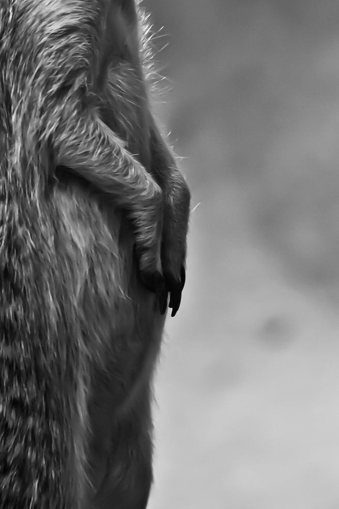cute meerkat worth column- Meerkat attentively looks into the distance - disciplined lookout. proud wild forest wildcat Lynx sits upright and looks with clear eyes. Discolored, black and white