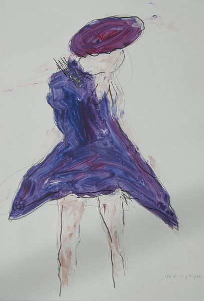 I have been working with gouache paints for months. My inspiration was to use materials that would allow me to quickly realise my ideas. With these water-soluble paints on marble paper, it is possible to paint even more quickly and fleetingly. This results in colourful works that have an enormous lightness. The dancer is an example of…
