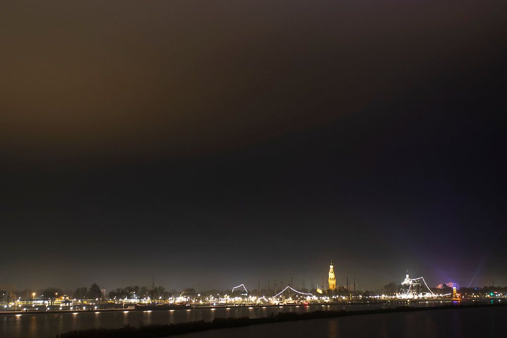 De skyline van Enkhuizen is in de nacht een prachtig verlicht beeld. Zeker in de kerstperiode is dit prachtig. Vanuit Enkhuizen zelf kwam een paarse gloed de lucht in, wat het was? Geen idee.