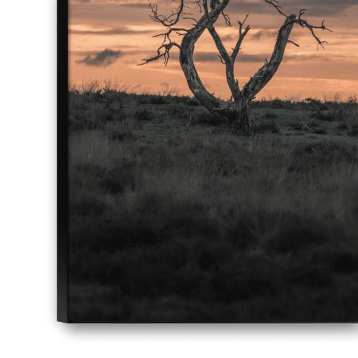 Buy this landscape artwork dead tree in evening light by Roy Kreeftenberg on canvas, ArtFrame, poster and wallpaper, printed on demand in high quality.