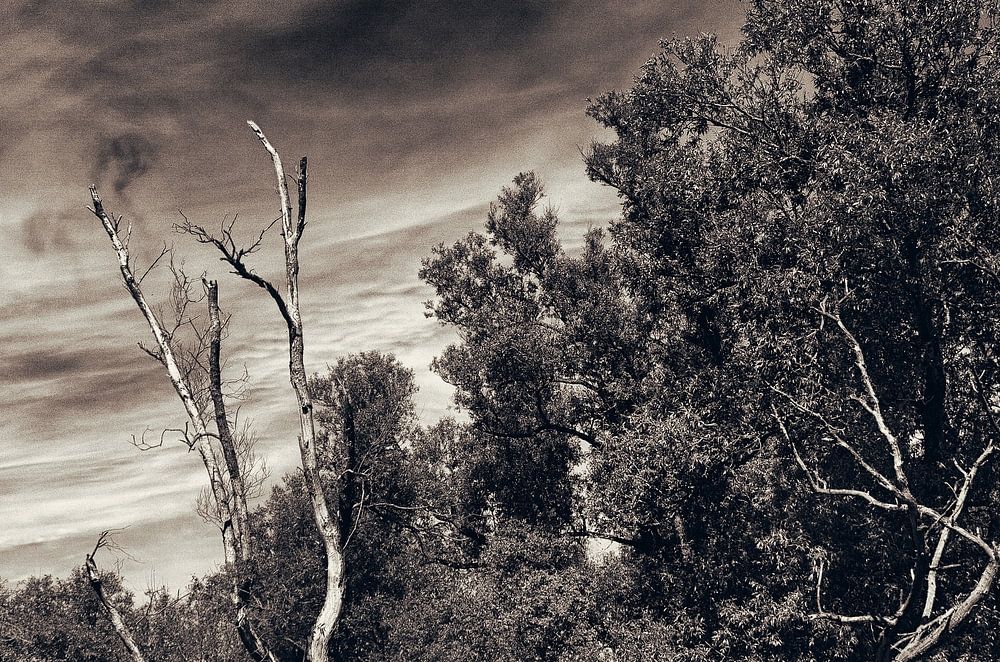 dead tree surrounded by living nature