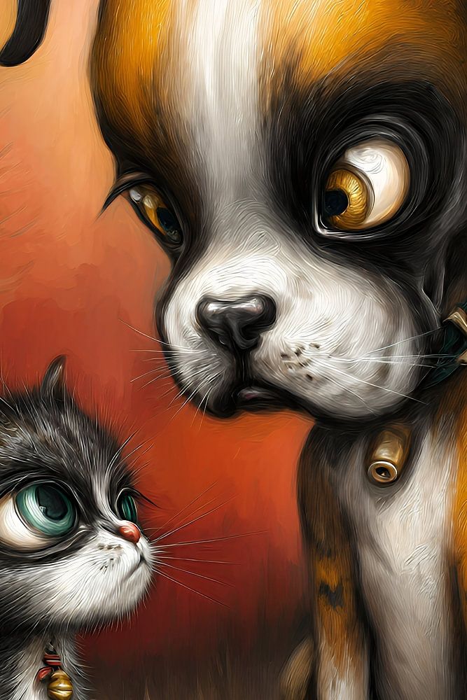 Cartoon Paintings of Dog & Cat - Playful Art with a Smile.