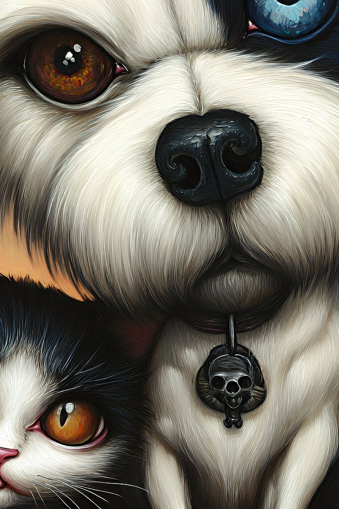 Cartoon Paintings of Dog & Cat - Playful Art with a Smile.