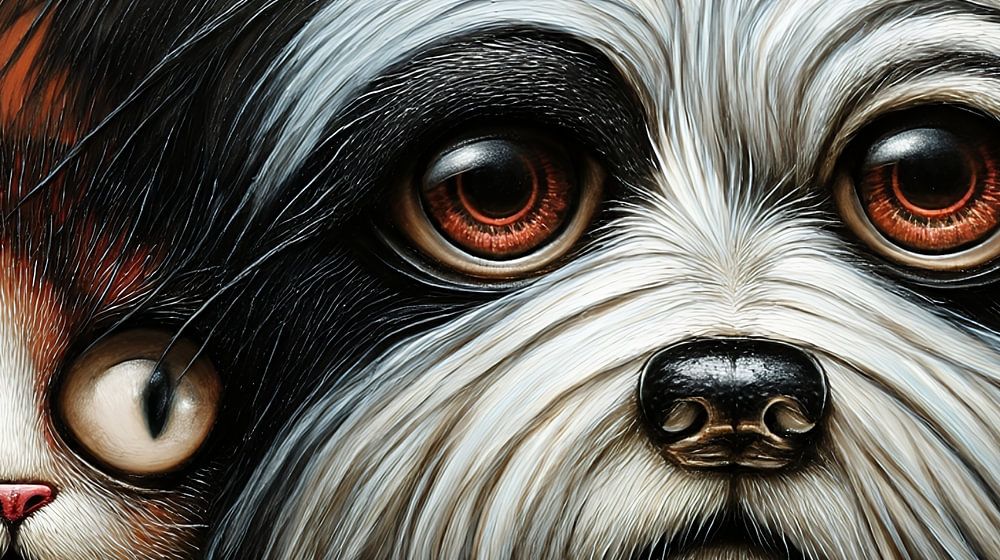 Cartoon Paintings of Dog & Cat - Playful Art with a Smile.