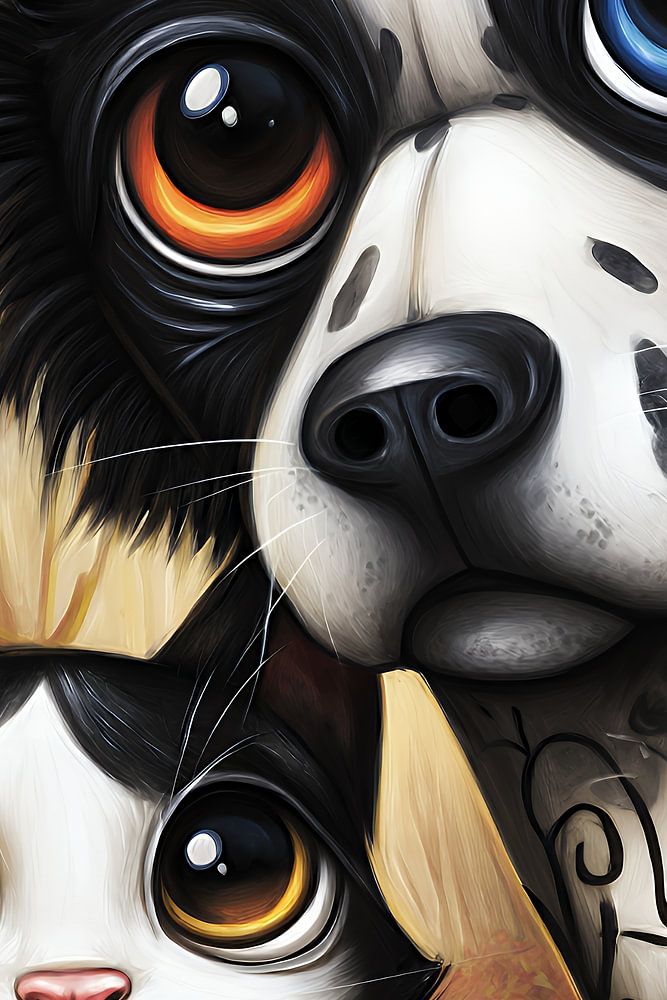Discover our collection of cartoon paintings of a dog and cat - a happy mix of creativity and character, designed especially for lovers of animals as well as design.