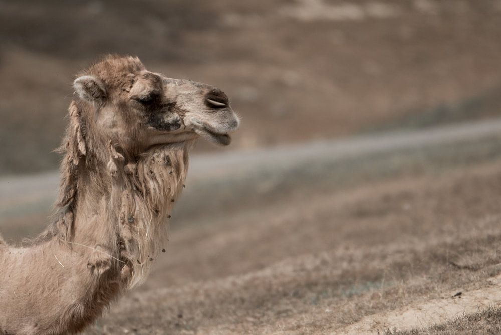 dromedaris in de rui in bruine en beige tinten. droog, zomer, warm, wildlife