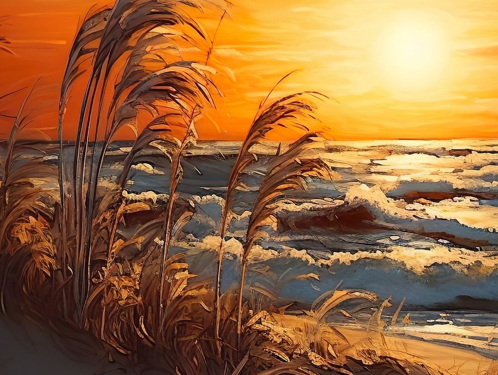 At sunrise, nature paints an enchanting scene in the dunes. The soft morning light streaks across the undulating landscape, where the sand dunes rise like gentle waves. A warm glow makes the sand sparkle like gold dust, while shadows and play of light create a delicate symphony. The sky turns shades of peach and pink, and the dunes seem enveloped in a quiet serenity. The awakening spectacle gives a sense of renewal and promises a day full of potential and beauty.
