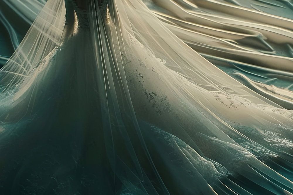 digital painterly fantasy image of fictional persons in fictional places bridal gown Asia