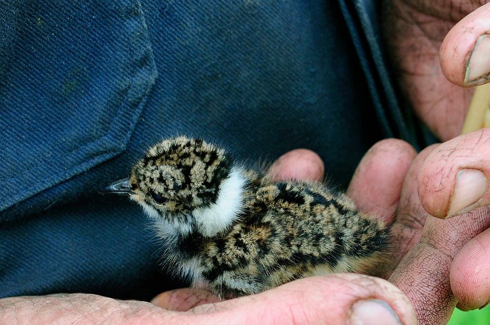 There are many grasslands in friesland that traditionally hosted many meadow birds. The lapwing was often visited for its eggs, which they collected. Nowadays, people already don't do that because there are fewer and fewer of them. These hands belong to a farmer who has a lot of love for his bird. A young lapwing in his hands mean care and devotion.