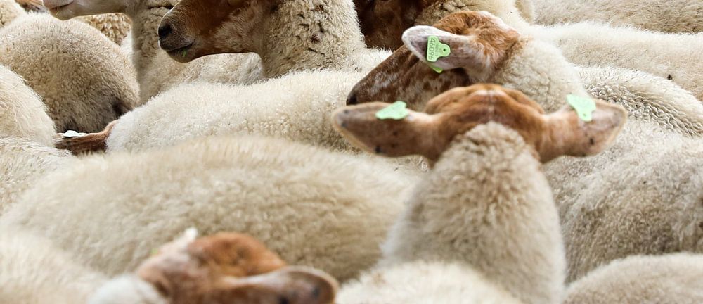 Buy the photo flock of sheep by Marieke Funke on canvas, ArtFrame, poster and wallpaper, printed on demand in high quality.
