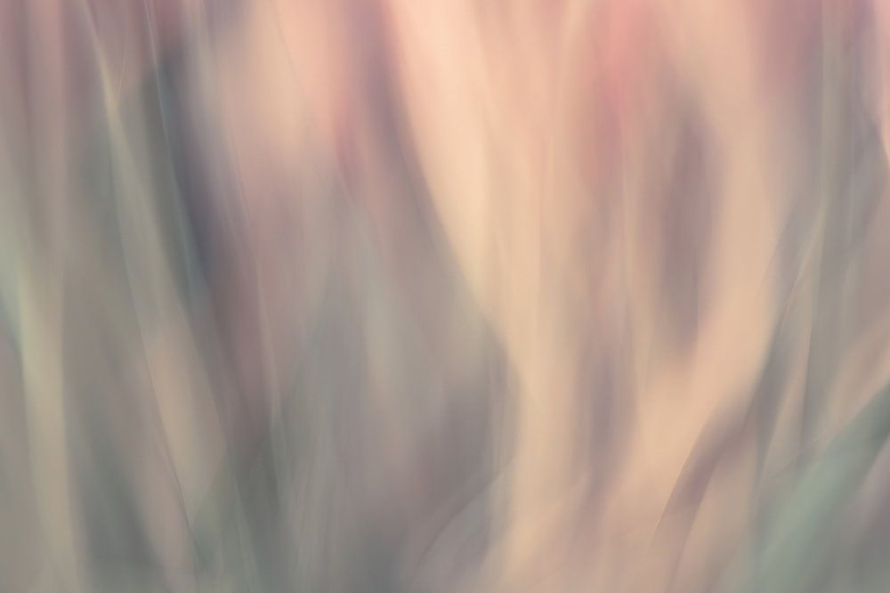 Close up of a bouquet of tulips, where the camera is deliberately moved during the shot, also called ICM. It creates an abstract image. The photo has been edited in soft pastel tones.