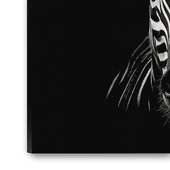 Buy this portrait front face of a zebra looking straight into the camera by Margriet Hulsker on canvas, ArtFrame, poster and wallpaper, printed on demand in high quality.