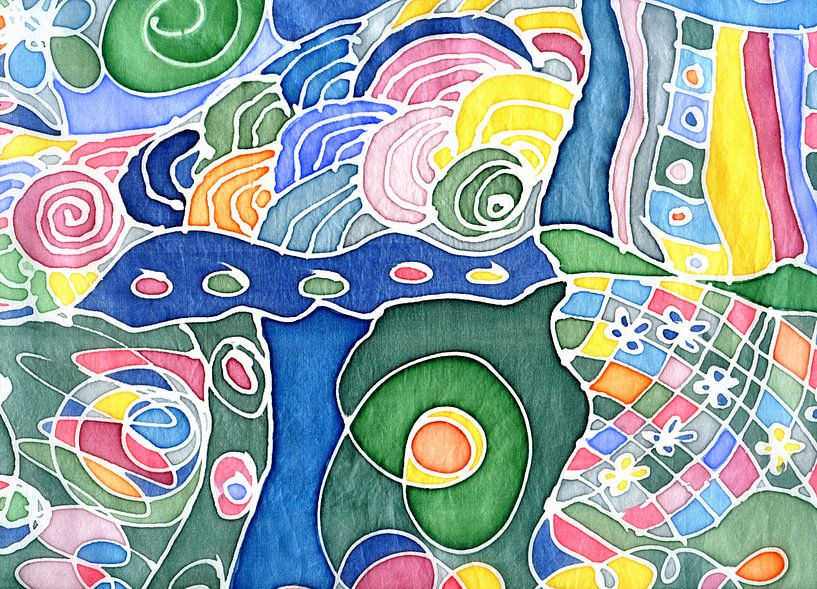 Painting in the unconscious - the magical interplay of simple lines that combine to form decorative swirls and patterns. The joy of creating - resulting in small oases of form and colour