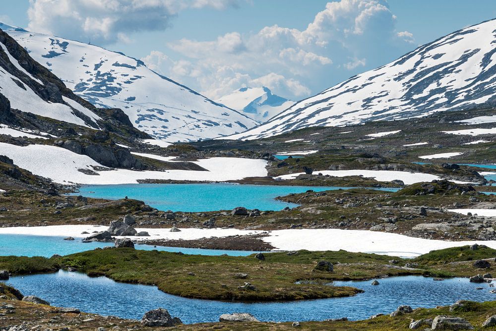 gamle strynefjellsvegen one of the most beautifull auto roads in norway with snow in summer