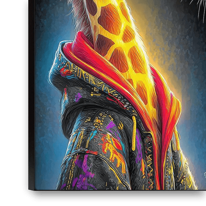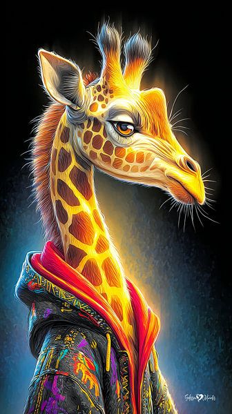 With its cocky look, colourful outfit and almost human attitude, this giraffe looks like it stepped straight out of a fashion show or street-art scene.