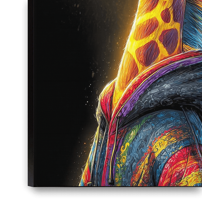 With its cocky look, colourful outfit and almost human attitude, this giraffe looks like it stepped straight out of a fashion show or street-art scene.
