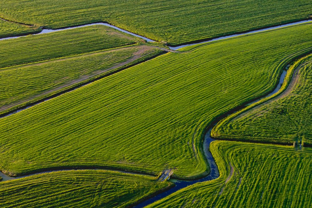 Buy the photo green fields from above in Friesland by Annette Schoof on canvas, ArtFrame, poster and wallpaper, printed on demand in high quality.