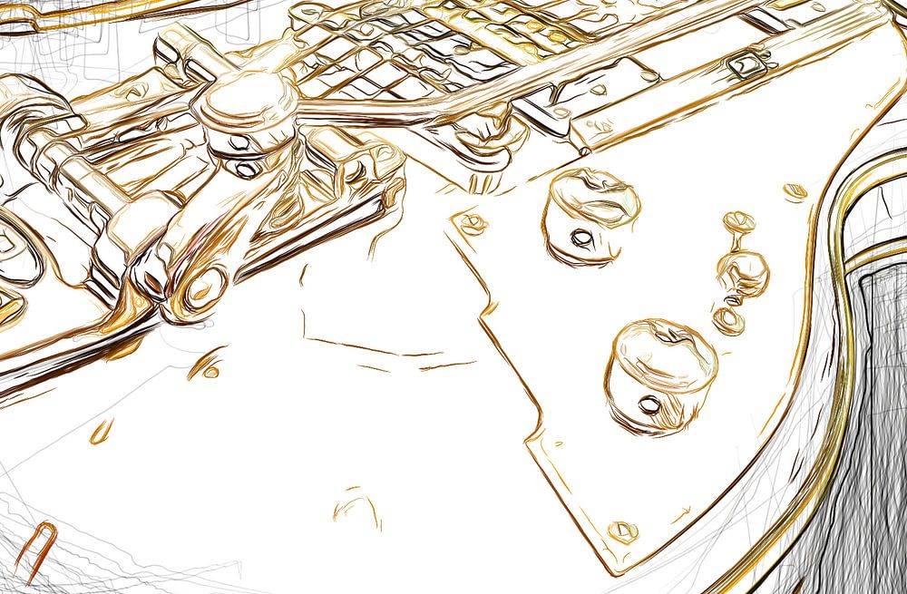 The drawing of this guitar is like music for the eyes. The picture is a beautiful view in her apartment, which is immediately in the eye of the beholder