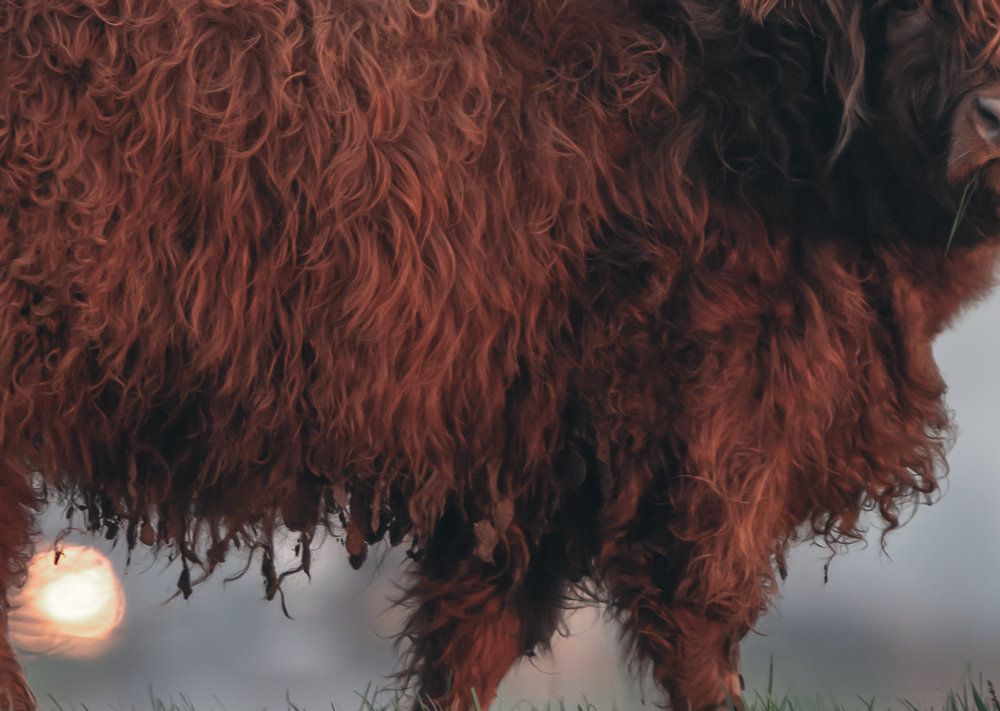 Buy this highland cow art highlander in the morning by natascha verbij on canvas, ArtFrame, poster and wallpaper, printed on demand in high quality.