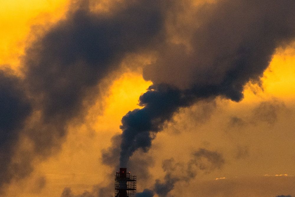 The noxious exhaust fumes from this petrochemical plant form beautiful silhouettes against the orange glow of the sunset.